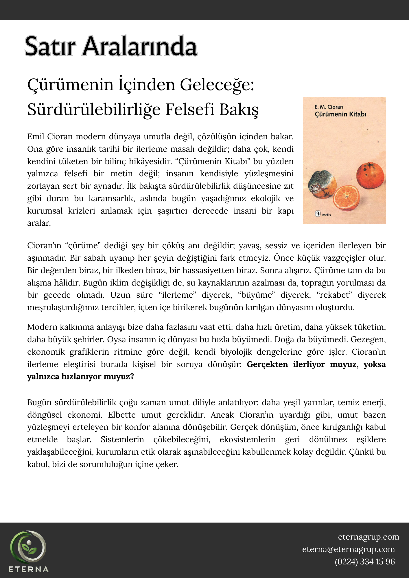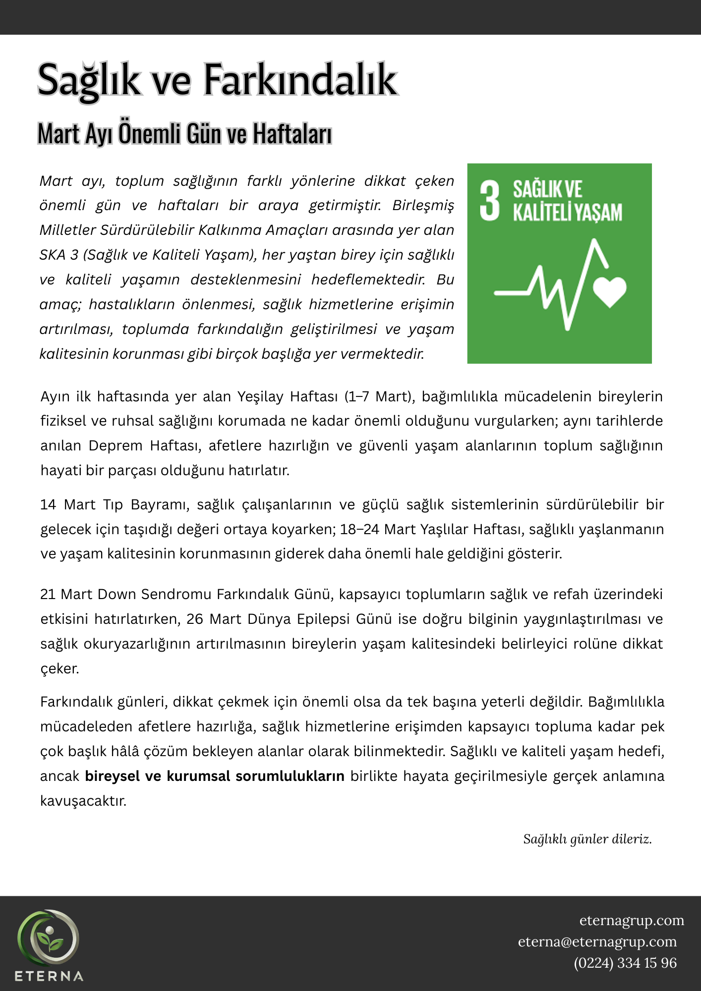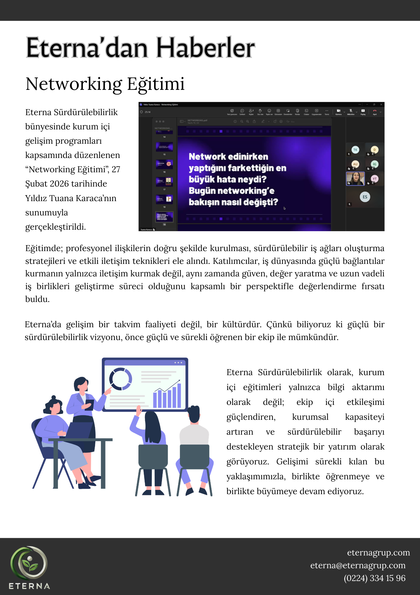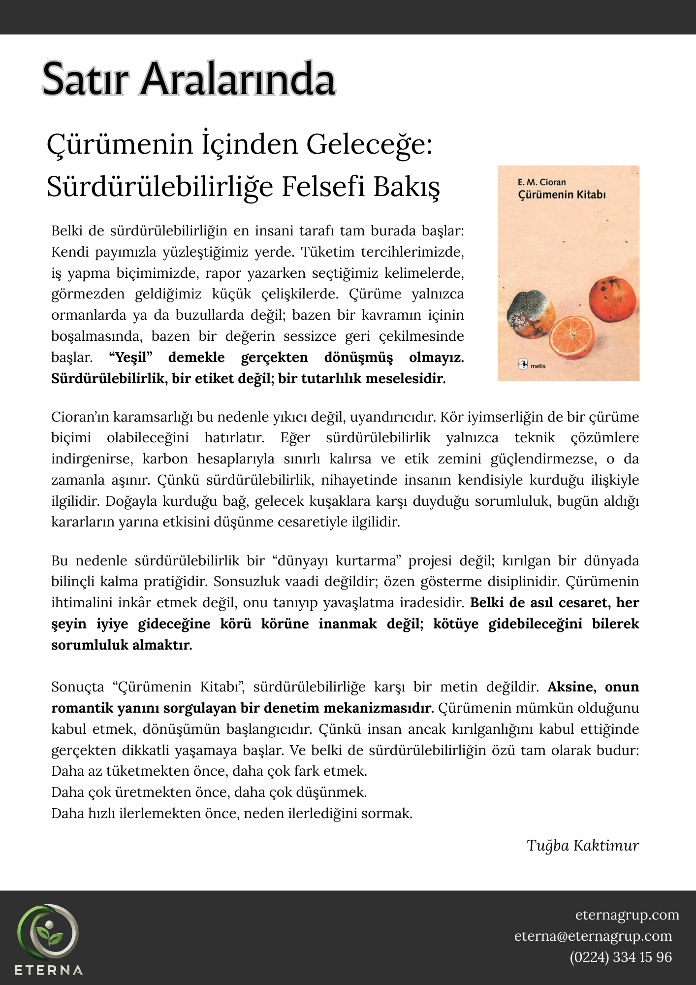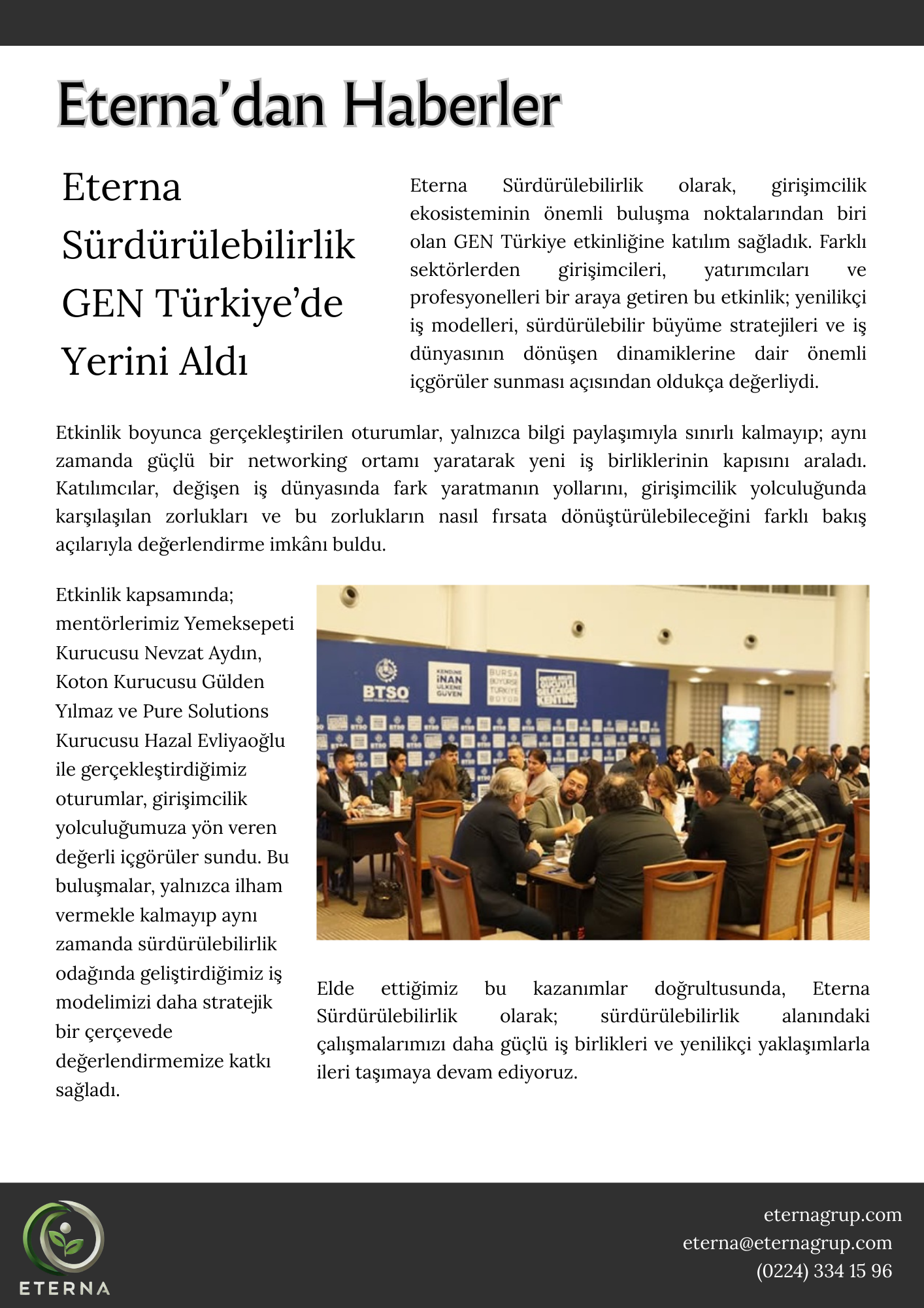 Bu sayıda; su verimliliği, CDP 2026 güncellemeleri, ISO 14019, karbon yönetimi ve sürdürülebilirlik gündeminin öne çıkan başlıklarının yanı sıra Eterna olarak gerçekleştirdiğimiz çalışmalara da yer verdik.